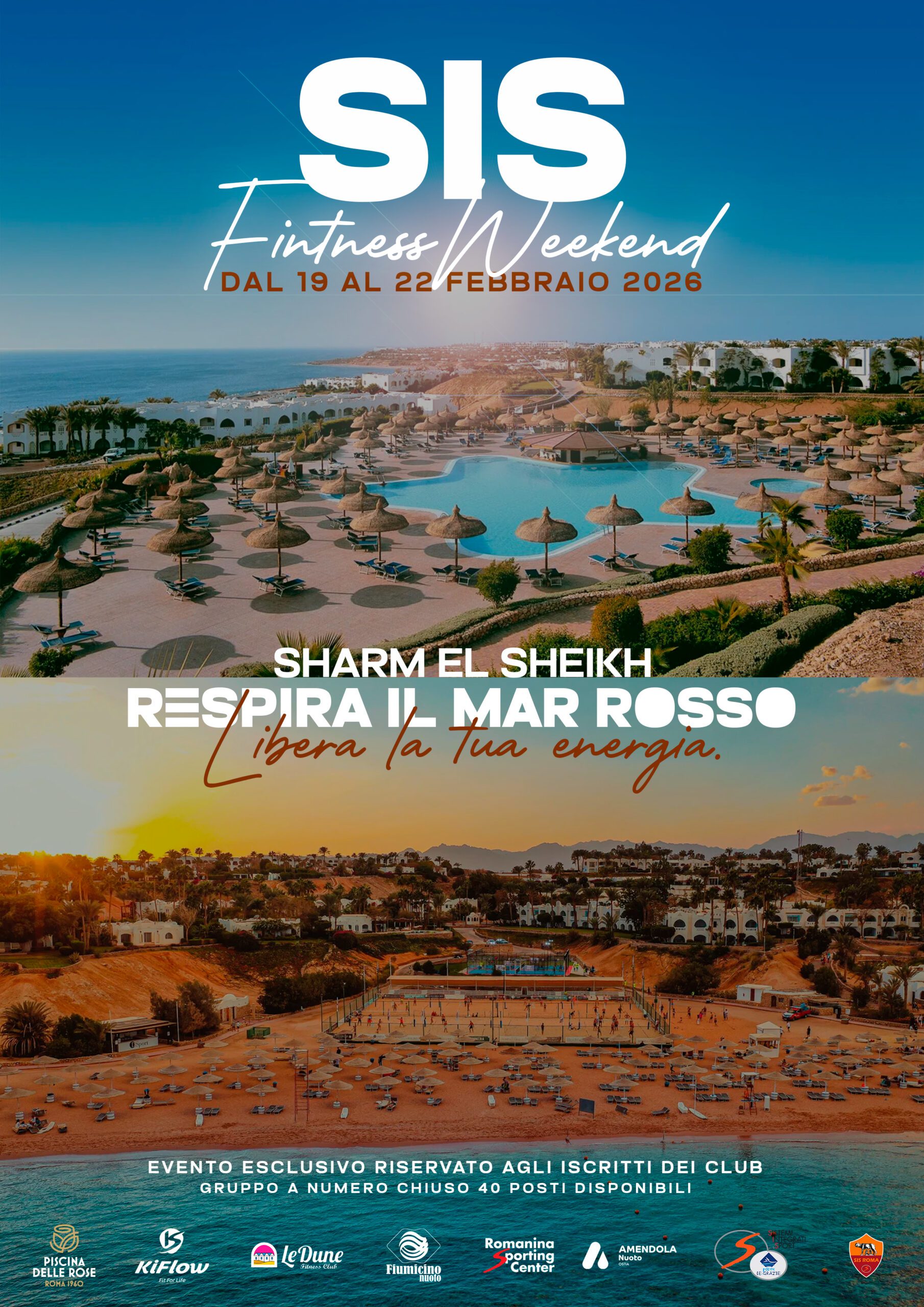 4 giorni. Un mare da sogno. Un programma unico.La prima Experience SIS sta per portarti dove il fitness incontra l’avventura: Sharm El-Sheikh. Preparati a vivere